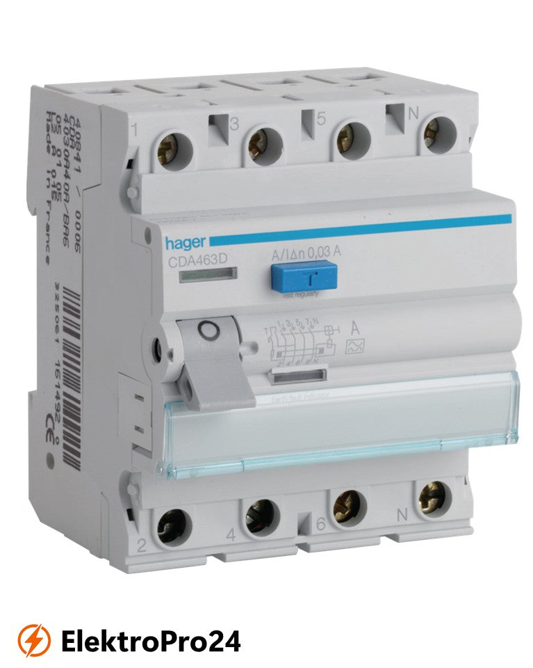 FI-Schutzschalter Hager CDA463D 4-polig 6kA 63A 30mA Typ A