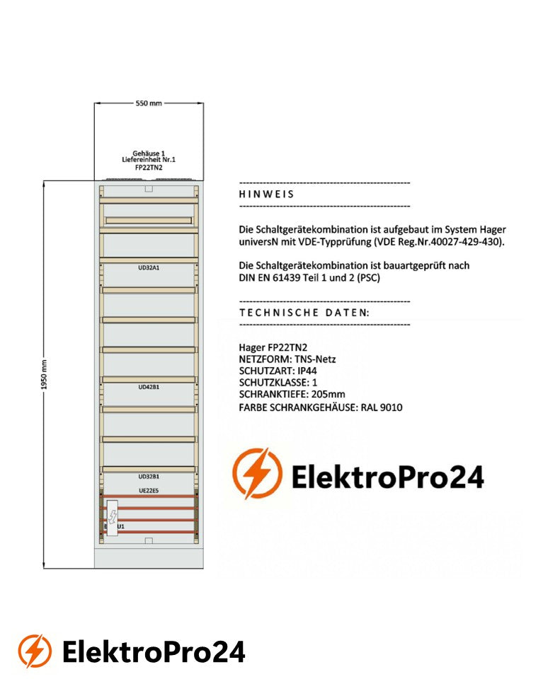 Hager FP22TN2 Schaltschrank - komplett ausgebaut UniversN, sofort einsatzbereit