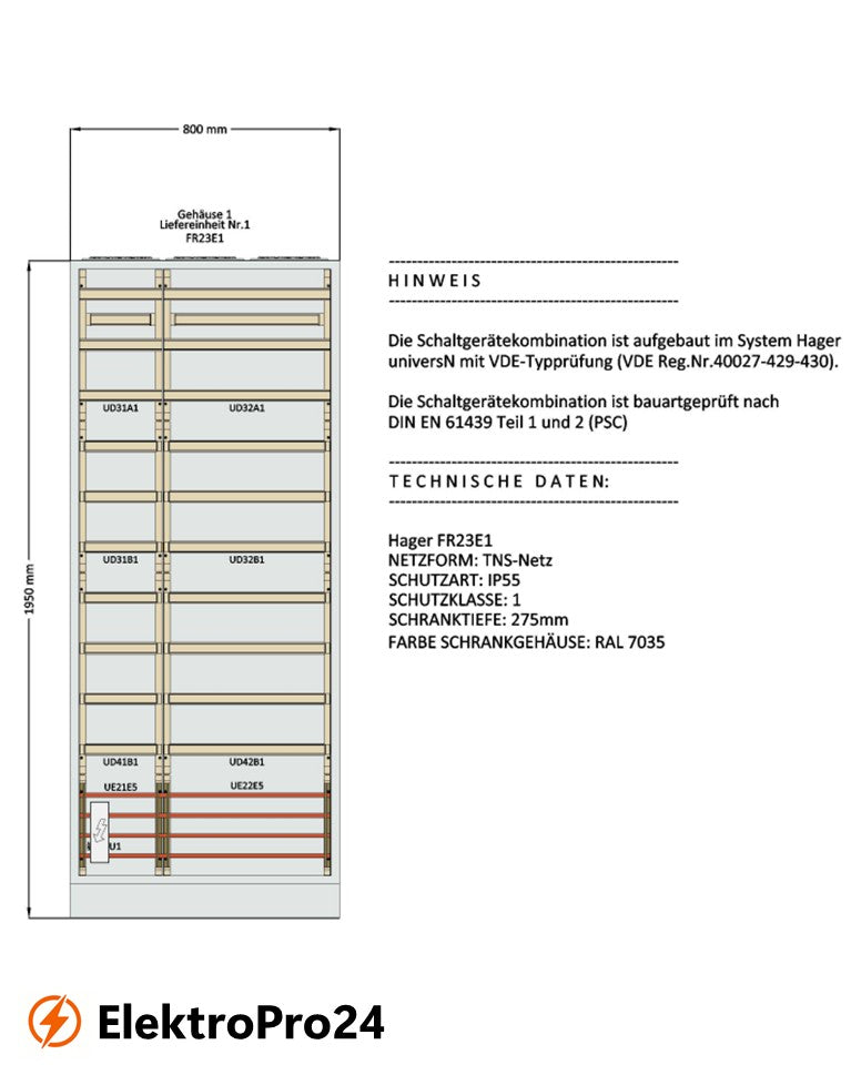 Hager FR23E1 Schaltschrank - komplett ausgebaut UniversN, sofort einsatzbereit