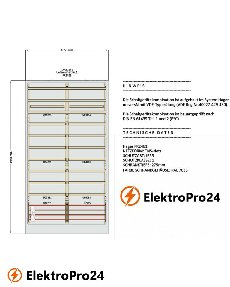 Hager FR24E1 Schaltschrank - komplett ausgebaut UniversN, sofort einsatzbereit