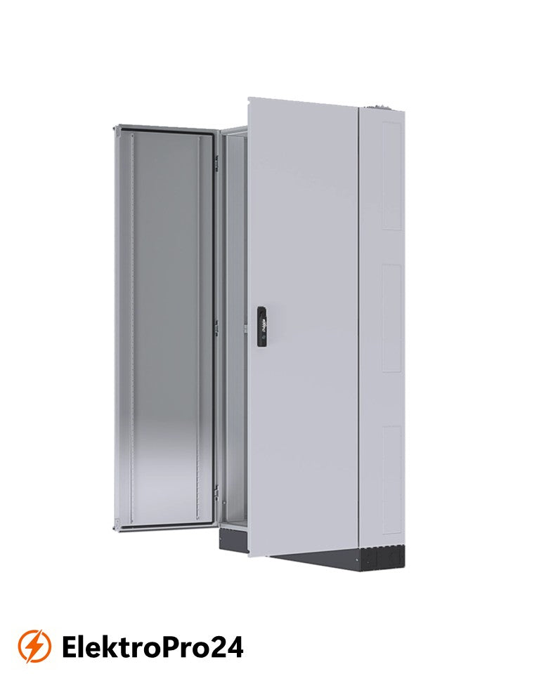 Der Hager FR24E1 Schaltschrank ist ein universeller Einzelstandverteiler für Innenraummontage mit den Maßen 1850x1050x275 mm und einem 100 mm Sockel. Er erfüllt die Normen DIN EN 61439-1/-2/-3 sowie DIN 43870 und ist für Niederspannungsverteilungen bis 800 A bei 3AC 230/400 V 50 Hz ausgelegt. Das 1,5 mm starke, pulverbeschichtete Stahlblechgehäuse bietet Schutzklasse I und Schutzart IP55. Zur Ausstattung gehören eine durchgehende Türdichtung, ein Schwenkhebelverschluss und die Vorbereitung für einen DIN-Profil-Halbzylinder – ideal für anspruchsvolle elektrotechnische Installationen.