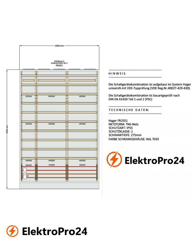 Hager FR25E1 Schaltschrank - komplett ausgebaut UniversN, sofort einsatzbereit