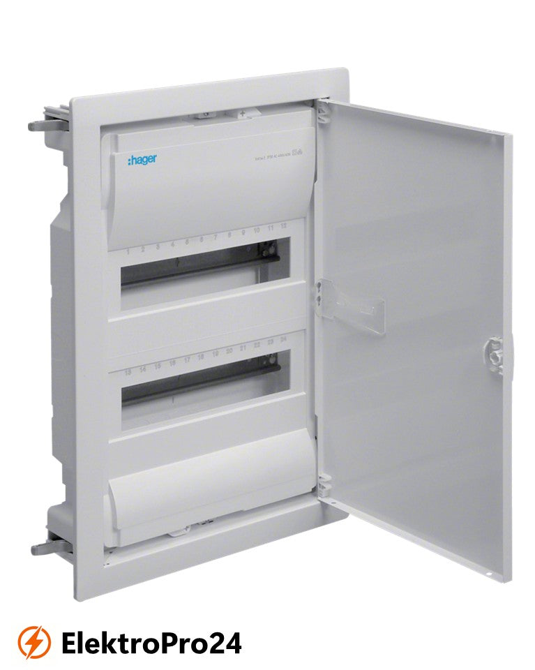 Hager Kleinverteiler VH24NC volta, Hohlwandverteiler, 2x12 PLE, IP30, SKII, Stahlblechtür