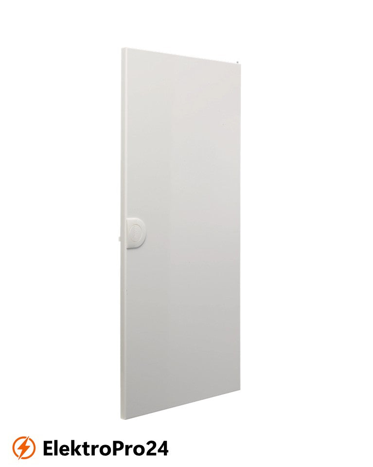 Tür, Volta, APV, 5-reihig, Stahlblech, mit Türschild. Tür für Aufputz-Kleinverteiler aus Stahlblech pulverbeschichtet und eingebrannt. Tür frontbündig mit innenliegenden handbedienbaren Scharnieren, Türverschluss mit frontbündiger Griffmulde und selbsttätig zurückklappendem Griff. Türanschlag rechts oder links.