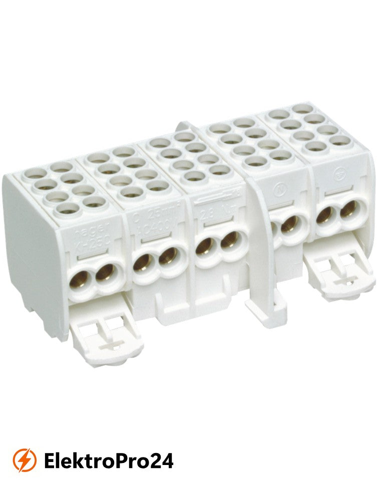 Die Hauptleitungsabzweigklemme, 5-polig, 2x25/2x16mm², ist fingersicher und gewährleistet eine sichere Installation und Verteilung der Hauptleitung. Sie ermöglicht den Anschluss von Leitungen bis 25mm² bzw. 16mm², bietet hohe Flexibilität und ist für den dauerhaften Einsatz konzipiert. Ideal für Verteilerinstallationen.