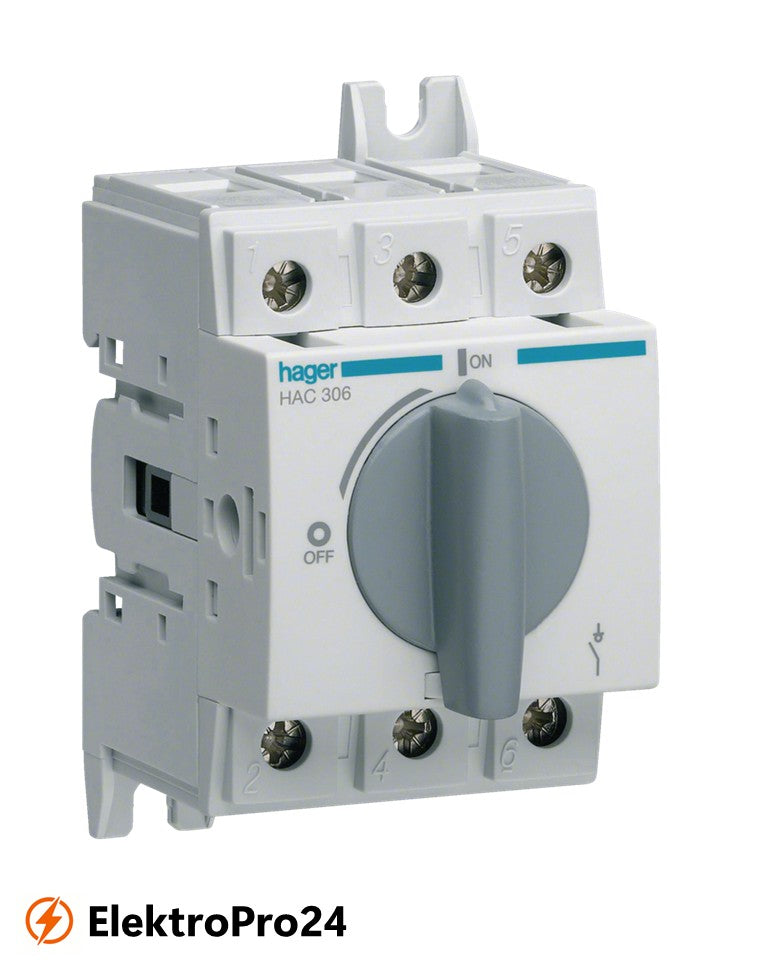 Lasttrennschalter Hager HAC306 3polig 63A für Hutschiene oder Montageplatte