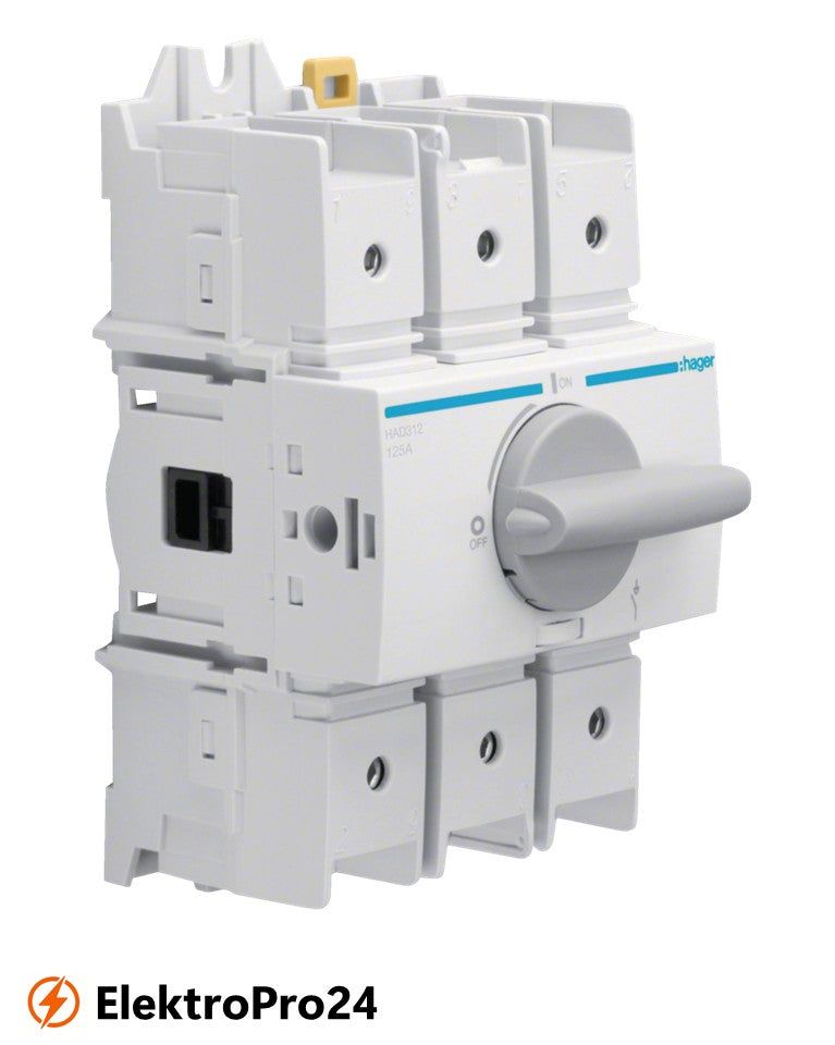 Lasttrennschalter Hager HAD312 3polig 125A für Hutschiene oder Montageplatte