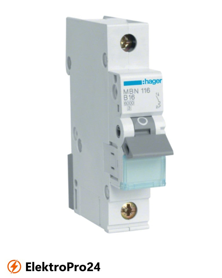 Leitungsschutzschalter Hager MBN116, Sicherungsautomat, 1-polig, 6 kA, B-Charakteristik, 16 A