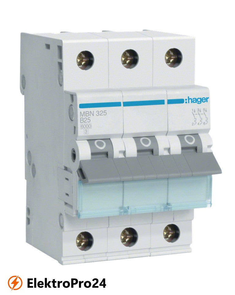 Leitungsschutzschalter Hager MBN325, Sicherungsautomat, 3-polig, 6kA, B-Charakteristik, 25A