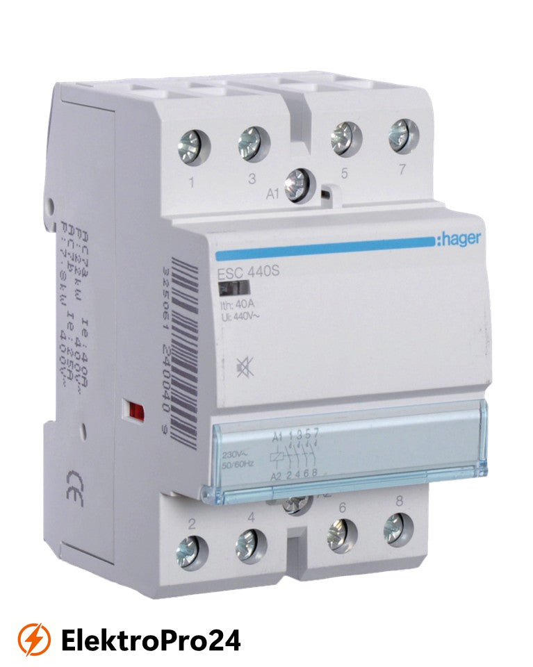Schütz Hager ESC440S/ Schaltschütz, 40A, 4S, 230V AC brummfrei